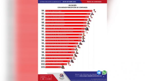 Se trata de una cifra histórica, pues al ser comparado con la misma que se realizó el 20 de septiembre de 2021, podemos ver que la administración de Jorge Antonio Quintero fue posicionada hasta el puesto 72.