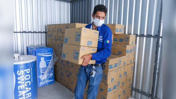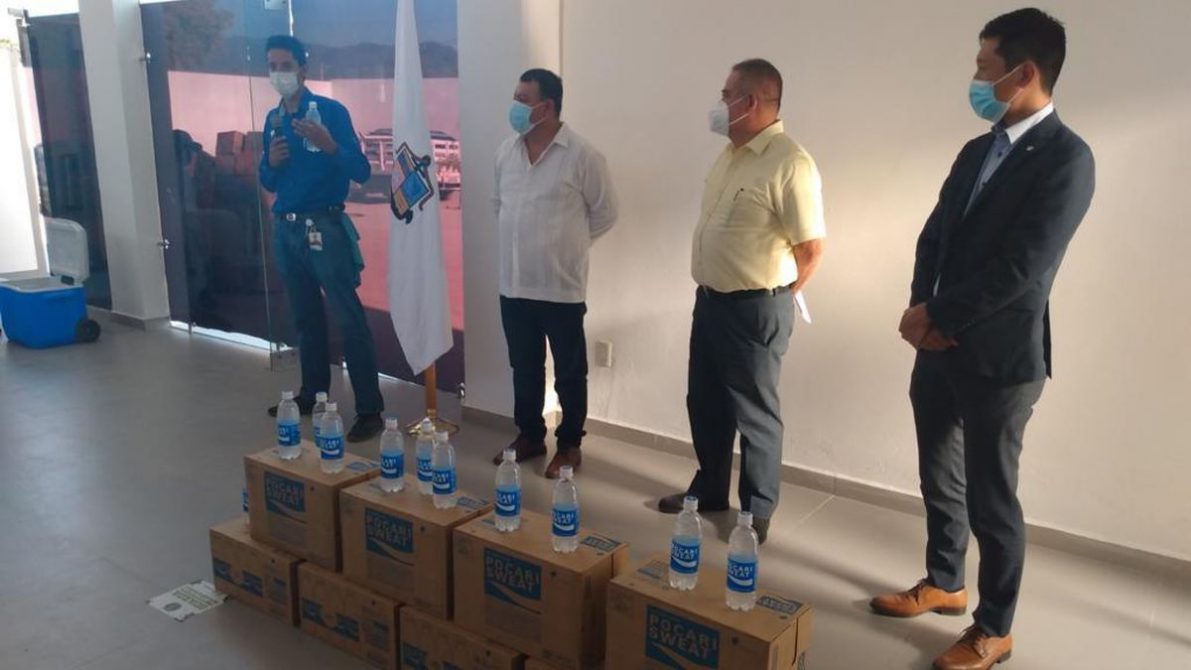 La donación de esta bebida hidratante consistió en 150 cajas de 12 litros cada una, distribuidos en botellas de 500 mililitros.
