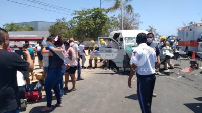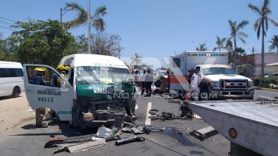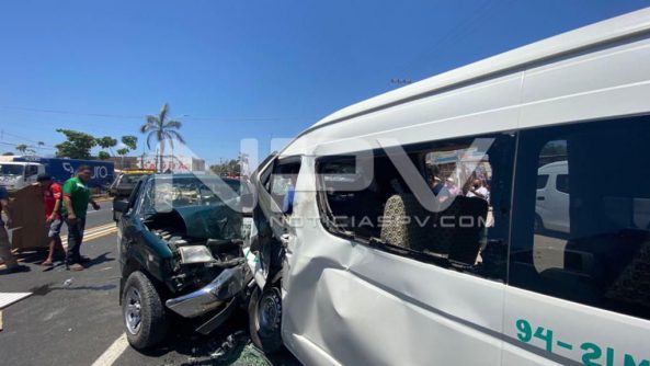 Hasta ese sitio llegaron los agentes de Tránsito Municipal a bordo de sus unidades quienes informan que se trata de un choque entre un taxi colectivo de la ruta Valle de Banderas – Nuevo Vallarta, de la marca Toyota, Hiace, tipo Urvan, de color blanco con placas 94-21-MDE de Nayarit y una camioneta Ford, Ranger, de color verde, con placas JT-43-373 de Jalisco, donde se apreciaban personas lesionadas, dos de ellas que estaban atoradas entre las fierros retorcidos de la unidad del transporte público.