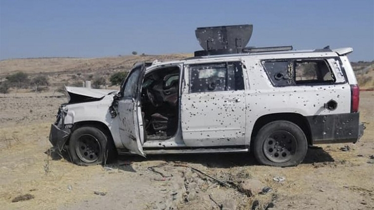 Por las imágenes filtradas también se aprecian cuatro camionetas con blindaje artesanal llenas de impactos de arma de fuego. En las inmediaciones de la batalla fue abandonado el cadáver de un hombre, quien resultó con la pierna derecha destrozada, así como múltiples perforaciones en la cabeza y el pecho.