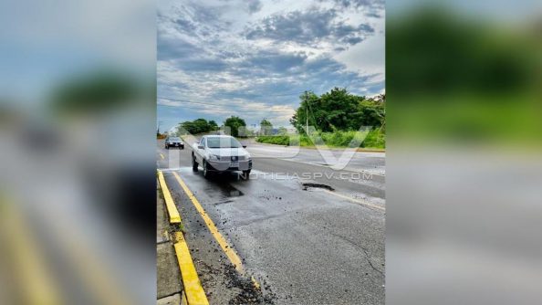 Son dos enormes baches los que se localizan bajando el puente para el ingreso a Nuevo Vallarta, los cuales se han convertido en dolor de cabeza para automovilistas