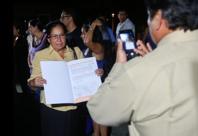 Mencionó que la felicidad que cada persona refleja, es el resultado del trabajo en equipo de los tres órdenes de gobierno, desde la gestión, el impulso, la agilización de trámites, la disponibilidad del recurso y, sobre todo, el deseo de ayudar para dar respaldo a su patrimonio familiar, ello con el objetivo de que crezcan y puedan hacer planes en su propiedad, con la seguridad de que dicho predio les pertenece.