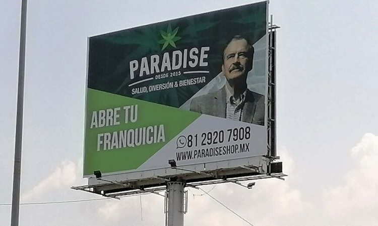 Desde el mes pasado, en avenidas de Monterrey hay anuncios espectaculares con el rostro de Fox Quesada que promocionan la empresa Paradise, que invita al público a abrir una franquicia de este negocio.