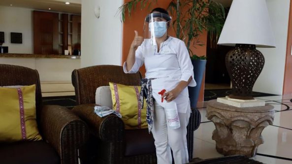 Colaboradores de la hotelería que ya reciben a los primeros visitantes en la Riviera Nayarit, se muestran motivados por regresar a sus trabajos y nos compartieron su adaptación a la “Nueva Normalidad», luego del reconocimiento que les hizo el presidente municipal de Bahía de Banderas, doctor Jaime Cuevas Tello a todos los prestadores de servicios al turismo en medio de la reactivación económica a causa del COVID – 19.