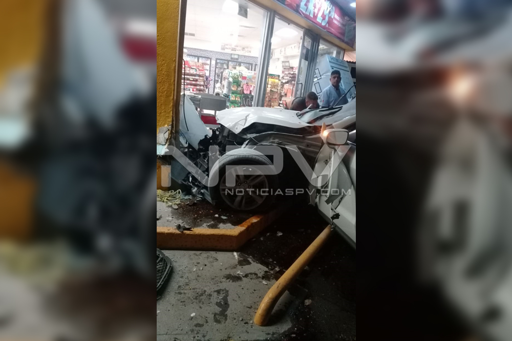 Se impactó de frente con su vehículo contra una tienda Oxxo en Nuevo Vallarta siendo rescatado por los Bomberos de los fierros retorcidos donde quedó prensado