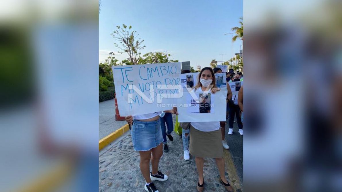 “Te cambio mi voto, por mi primo”, “Ustedes quieren votos, nosotros justicia”, “Exigimos respuestas queremos que regrese Christopher”, “¿ Y tu que harías si fuera tu hijo?, exigiendo justicia”, “Se busca, tus hijos te esperan Carlos Amparo”, “Te queremos en casa Ignacio Luna González”, “Vallarta unidos con las familias en su dolor”, “Hoy pedimos una sociedad donde los jóvenes podamos vivir con dignidad, libertad y justicia”, “Para una madre es muy triste ver pasar el amanecer, atardecer, anochecer y ver, que tu hijo no está”, “Soy mamá, me preocupa la inseguridad”.