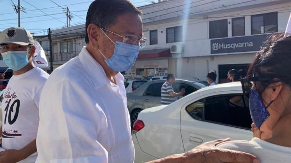 El profesor Michel, se veía feliz y con mucho ánimo; bailó con las líderes y corría de una esquina a otra para saludar a quienes le extendían la mano.