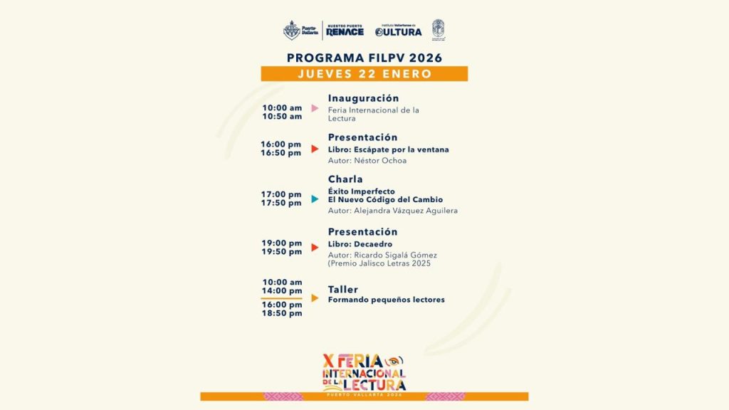 El evento, organizado en conjunto por el Instituto Vallartense de Cultura y la Fundación Cultural Mecenas del Libro A.C., tendrá lugar en la Plaza de Armas del 22 de enero al 2 de febrero. La inauguración formal se llevará a cabo este jueves a las 10:00 de la mañana, dando inicio a doce días de intensa actividad literaria y académica.