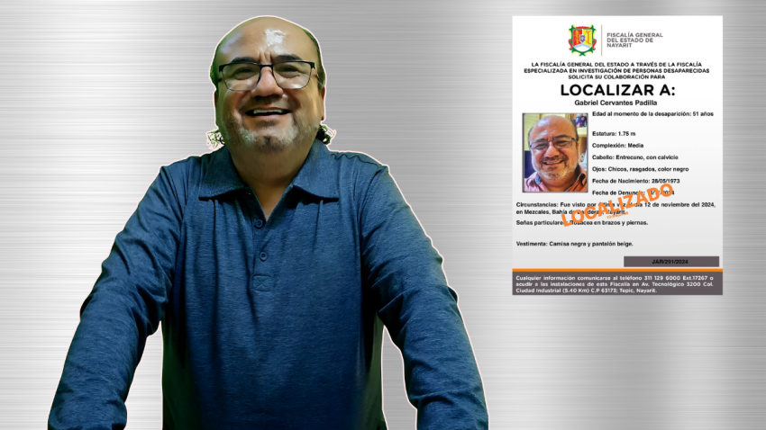 La Fiscalía General del Estado de Nayarit confirmó hoy, 3 de octubre, que desde el 10 de septiembre de 2025 era real la localización con vida de Gabriel Cervantes Padilla, quien había sido reportado como desaparecido desde el 13 de noviembre de 2024, pero un día antes se perdió toda comunicación con él.
