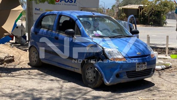 Hasta ese sitio arribaron los agentes de Tránsito Municipal, quienes se hicieron cargo del accidente informando que se trata de un auto Matiz, de color azul con placas JMG-68-29 del estado de Jalisco y una camioneta repartidora de tortillas de la marca RAM, de color blanco con placas PF-27-662.