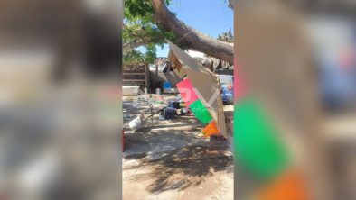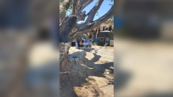 Ahí reportaron que dos vehículos habían chocado y que se llevaron de corbata el producto de un puesto de Mariscos, que estaba instalado abajo de un enorme árbol de parota, pero que afortunadamente no lastimó a los vendedores, quienes segundos antes se habían movido del lugar.