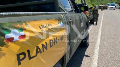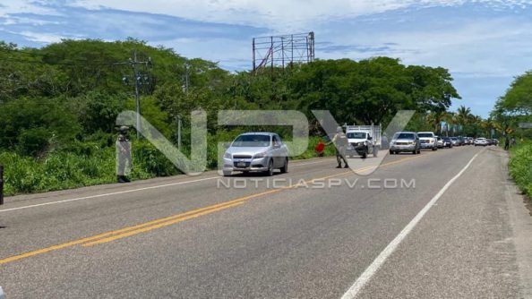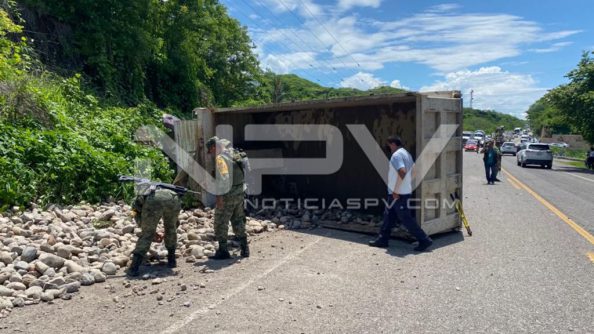 Fueron una góndola cargada de piedras y un taxi Versa, del sitio de Nuevo Vallarta, los que chocaron en el lugar donde se apreciaban también los elementos del Ejército Nacional, resguardando el área y prestando apoyo en la circulación de los vehículos ya que estaba habilitado un solo carril por motivo de que la góndola quedo atravesada en la carretera.