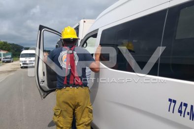 Al lugar llegaron los oficiales de la Policía Vial, a bordo de una unidad radiopatrulla, quienes se percatan del accidente y luego informan a su base operativa que se trata de un choque por alcanse donde un taxi colectivo del sitio de El Porvenir, con las placas de circulación 77-47-MDE, del transporte público del estado de Nayarit, se impactó de frente contra la parte trasera de un camión de la línea Autotransportes Medina, con placas 914-301-P, donde resultaron varias personas lesionadas.
