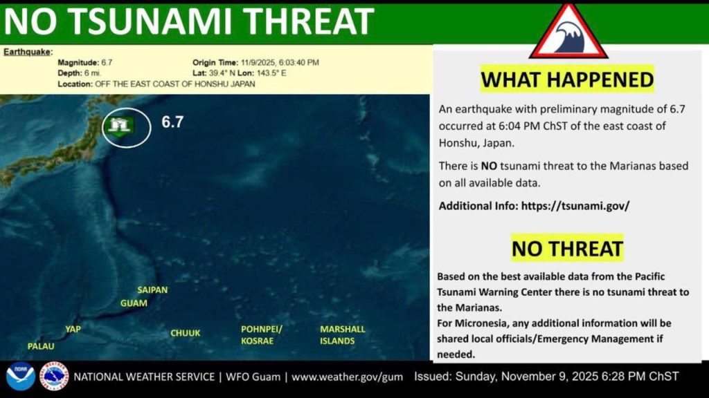 Un fuerte terremoto de magnitud 6.7 sacudió este domingo el noreste de Japón, informó la Agencia Meteorológica de Japón (JMA), y había desatado una alerta de tsunami. Sin embargo, la JMA levantó la alerta de tsunami, aunque permanecen las advertencias regulares de nuevos sismos.