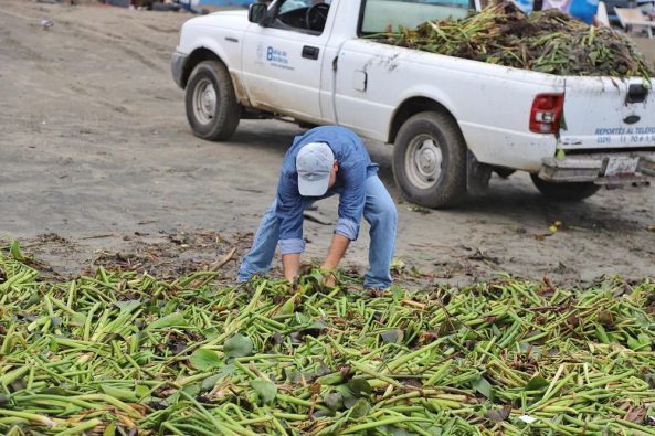 Durante los trabajos, se detectó que el lirio contenía gran cantidad de desechos plásticos: “Debemos hacer conciencia para depositar la basura debidamente embolsada en los puntos de recolección. Los basureros clandestinos tarde o temprano son arrastrados por las corrientes de lluvia hacia los cuerpos de agua, como arroyos, ríos y esteros y la basura irremediablemente llegará al mar”, señaló Jesús Arreola, jefe de Playas Limpias del Gobierno Municipal.