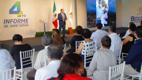 Así lo expresó en su mensaje al pueblo de Bahía de Banderas y Nayarit, el doctor Jaime Cuevas Tello, presidente municipal de Bahía de Banderas, quien acompañado por su familia, representantes sociales, gabinete y colaboradores, entregó primeramente este mediodía en Sesión Solemne de Cabildo, el documento que resume cuatro años de logros y avances en nuestro municipio a síndico y regidores, para enseguida dirigir su mensaje e información en un evento virtual durante la tarde de este lunes 6 de septiembre.