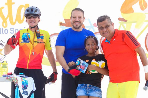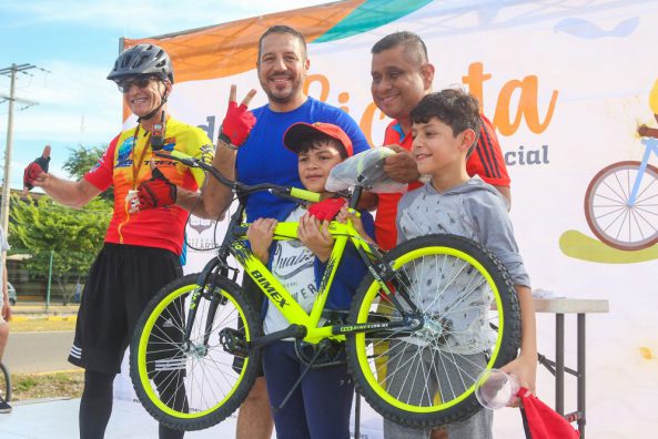 También agradeció a las subdirecciones de Tránsito Municipal y de Protección Civil y Bomberos, quienes acompañan este recorrido y dan seguridad a los ciclistas. Al término del recorrido se celebró la rifa de regalos, en donde el menor Alejandro Regla fue el afortunado ganador de la bicicleta.