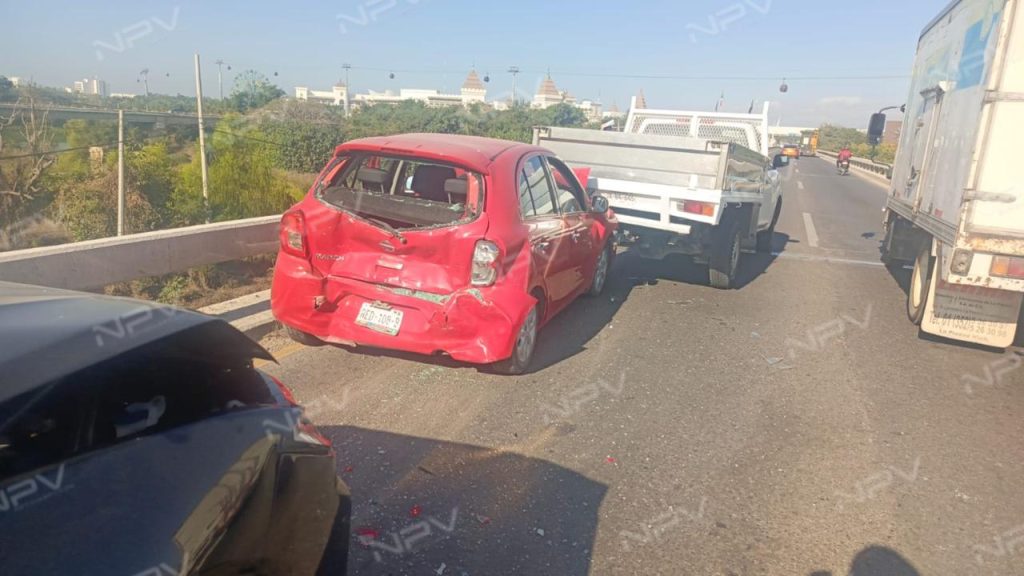 Un accidente múltiple registrado la mañana de este martes sobre el puente Ameca provocó daños materiales considerables y afectaciones momentáneas a la circulación vehicular en el ingreso al municipio de Bahía de Banderas, sin que se reportaran personas lesionadas.