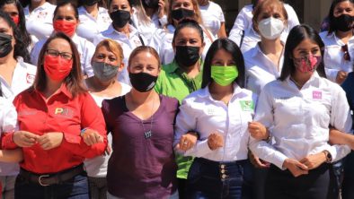 Puerto Vallarta, Jalisco.- Marina de los Santos y mujeres integrantes de su planilla firmaron este miércoles el “Pacto por la Sororidad” que, bajo convocatoria de la colectiva feminista local Perspectiva Violeta México, busca evitar la violencia política de género durante el presente proceso electoral.