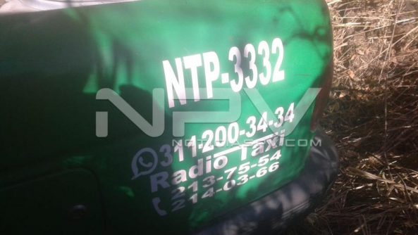 Ahí reportaron al personal que atienden las llamadas de auxilio en el módulo de emergencias del 911, que en un barranco se apreciaba un vehículo accidentado, este de la marca Nissan, tipo Tsuru, de color verde, al servicio de taxi del sitio de Soriana, con placas 80-81-MDD, del transporte público, por lo que solicitaban la presencia policial el en lugar.