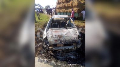 Hasta ese sitio arribaron como primeros respondientes los agentes de la Policia Estatal Preventiva, quienes informaron que al arribar se percatan de que ahí se encuentra un auto compacto totalmente calcinado.