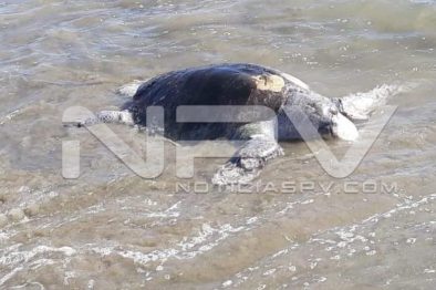 «Es la tercera tortuga que sale muerta del mar en esta semana», según manifiestan locatarios y vendedores ambulantes de Bahía de Banderas, luego de que apreciaron salir al quelonio en la playa del Club Fibba, en el desarrollo Náutico Nuevo Vallarta, donde inmediatamente intervinieron los agentes de Seguridad Privada y Guardavidas de Protección Civil del Estado de Nayarit, para asegurarla y resguardarla mientras daban avisos sus superiores.