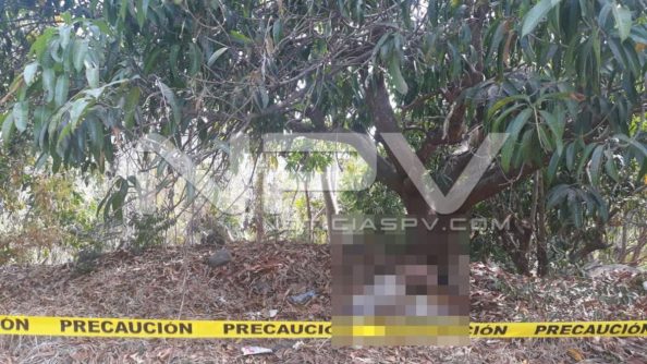 Ahí abajo de unos árboles de mango estaba la persona fallecida que ya se encontraba en avanzado estado de descomposición, el cual vestía un pantalón de color blanco con playera tipo Polo de color café con franjas blancas y descalzo.