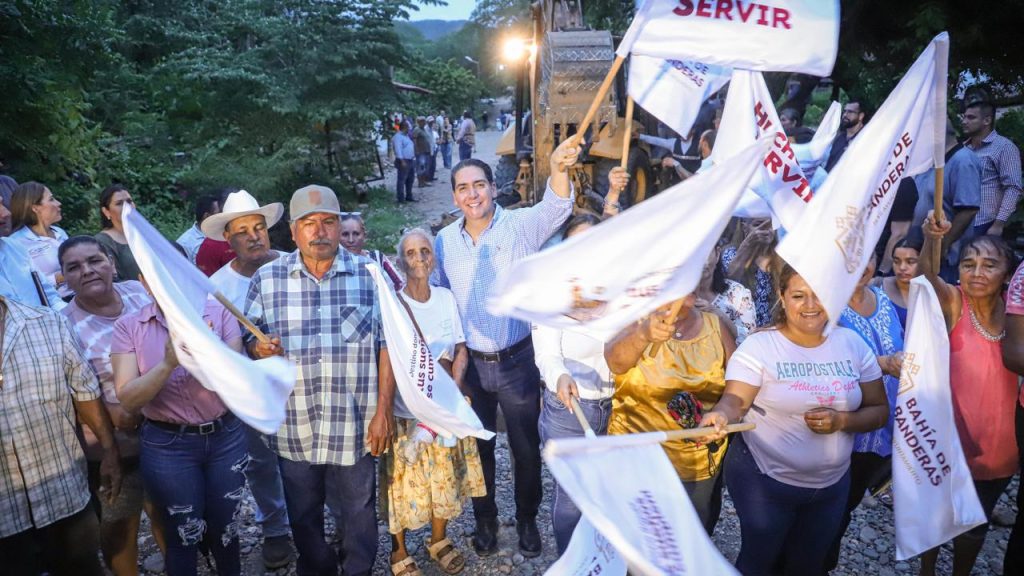 Con el corazón puesto en la sierra y el compromiso firme de mejorar la calidad de vida de todos los bahíabanderenses, el presidente municipal Héctor Santana García dio arranque a la obra de empedrado ahogado con huellas de rodamiento en concreto en la avenida principal de ingreso a la comunidad de Aguamilpa, una vialidad largamente esperada por las y los habitantes de esta zona.