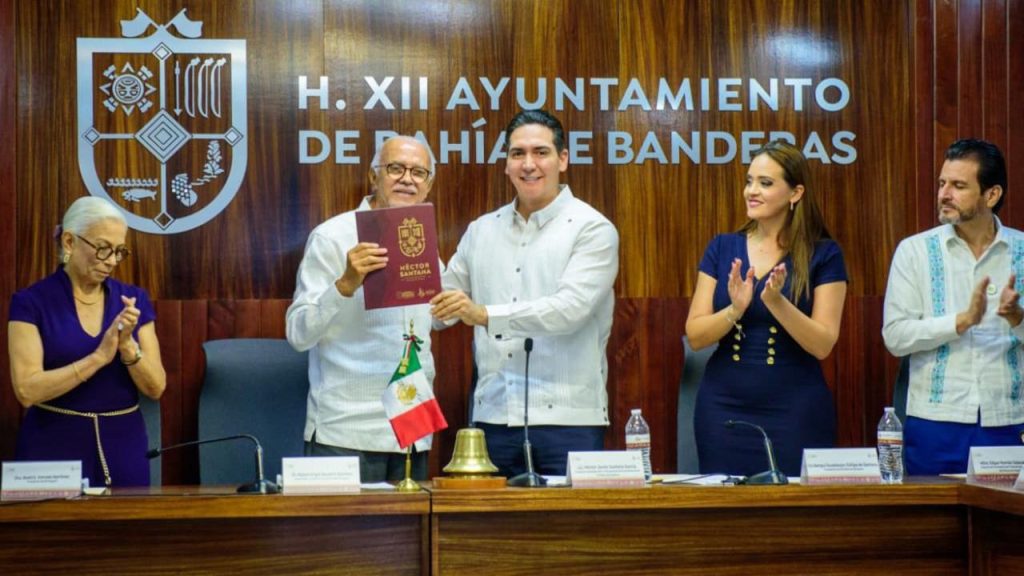 Bahía de Banderas, Nayarit.– En la presentación del Primer Informe de Gobierno, el presidente municipal Héctor Santana García destacó los avances logrados durante su primer año de administración, con la ejecución de más de 150 obras públicas, el fortalecimiento de los servicios básicos, la certificación de 15 playas limpias y la mejora en los salarios de los elementos de seguridad pública.