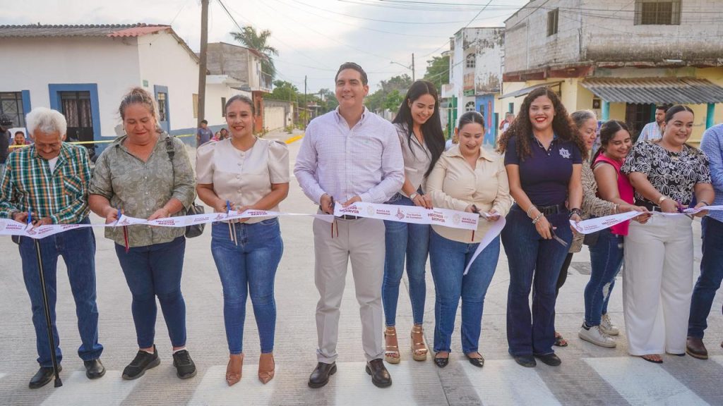 El presidente municipal Héctor Santana encabezó la inauguración de la Calle Primero de Mayo en San Juan de Abajo, una obra de concreto hidráulico que mejora la movilidad y eleva la calidad de vida de más de 11 mil habitantes de esta comunidad.