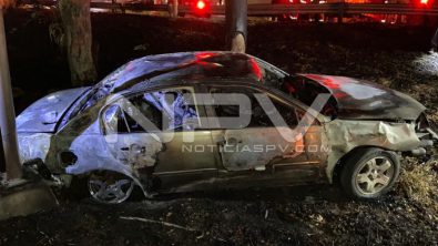 Conducía un auto con placas de Sinaloa y se volcó en el libramiento de Tepic *Grave fue llevado al Hospital Central, ya que presenta quemaduras de tercer grado en el 80% de su cuerpo