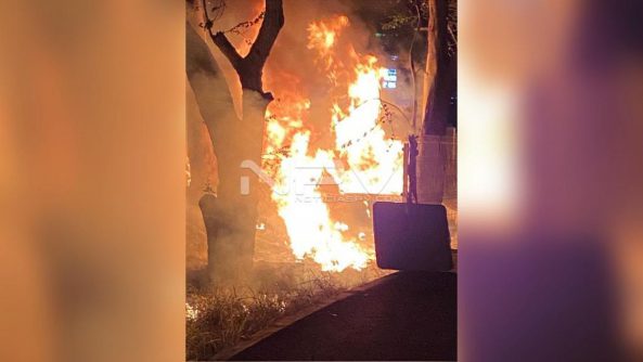 Varias unidades se aproximaron el lugar de los hechos, en donde al llegar se dieron cuenta de que en efecto, se trataba de un auto marca Chevrolet, el cual se encontraba quemándose en su totalidad y además estaba quemándose en los alrededores la maleza y parte del jardín.