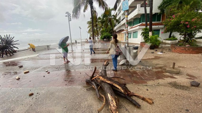 Los efectos de lluvia, oleaje y viento, dejaron algunos negocios afectados en el Malecón II y árboles caídos en la ciudad