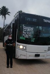 Por la tarde, se las 17:00 a las 20:00 horas, dentro del operativo a los choferes de camiones y ciudadanos que utilizan el transporte público, se les dan recomendaciones en el uso del cubre bocas, sobre lavarse las manos, guardar su sana distancia, participando 25 oficiales de servicio y 8 unidades.