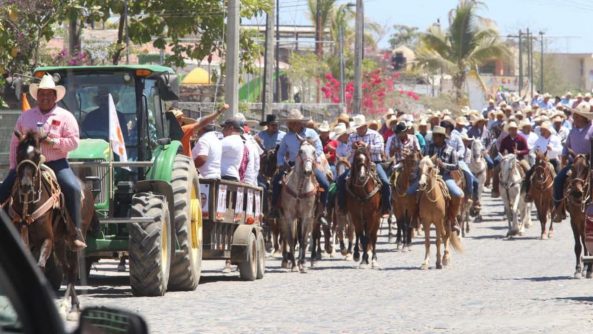 El nutrido contingente encabezado por los dos candidatos, seguidos por decenas de jinetes, charros y aficionados, sin faltar las alegres notas de la música de banda, partió alrededor de las 12:00 horas del lienzo charro El Herradero, en la parte alta del Pitillal, recorriendo la avenida Víctor Iturbe y las principales calles de esta populosa delegación, hasta llegar al lienzo charro Miguel “Prieto” Ibarría, en la avenida México-Mojoneras.