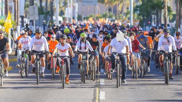 Las principales calles de Puerto Vallarta se pintaron de naranja, con la participación de más de 2 mil ciclistas que integraron la caravana de los candidatos de Movimiento Ciudadano