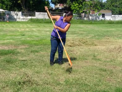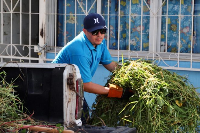 En relación al programa de Mantenimiento de Espacios Públicos, Virgen Fletes dijo que es un programa de la Dirección de Servicios Públicos Municipales, al que se suma Desarrollo y Bienestar Social, como sucedió en la Unidad Deportiva del Porvenir, donde se podó el pasto y se retiro la hojarasca y basura acumulada.
