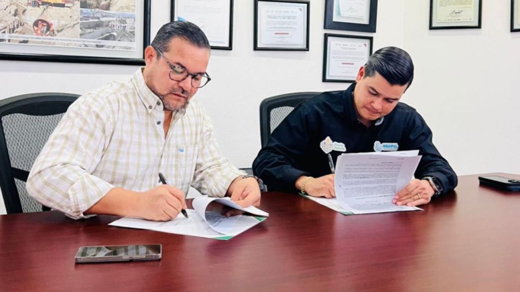 El Director General de SEAPAL Vallarta, Carlos Ruiz y el Director del Conalep Plantel Puerto Vallarta I, Alejandro Aguilar, firmaron un convenio de colaboración que permitirá a sus estudiantes realizar su servicio social y prácticas profesionales en el organismo operador.