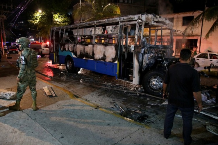 Acapulco, Gro. Un camión urbano de la línea azul, perteneciente a la ruta Base-Costera, fue incendiado por hombres desconocidos alrededor de las 9 de la noche del viernes, sobre la avenida costera Miguel Alemán, a la altura del barrio de la Bodega, en la zona Tradicional del puerto.