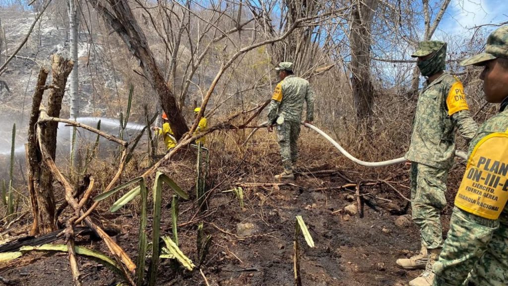 En estas labores participaron de manera conjunta elementos del Ejército Mexicano, brigadistas estatales, personal especializado en combate de incendios forestales, así como cuerpos locales de Protección Civil, quienes durante jornadas prolongadas trabajaron en condiciones adversas para evitar que el fuego alcanzara zonas habitadas o áreas de mayor riesgo.