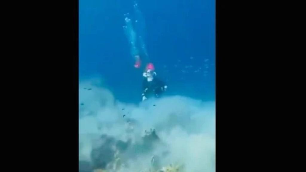 En el video que circula en redes sociales se ve a cinco buzos nadando cerca del arrecife, cuando de pronto una fuerza invisible los jaló de un lado a otro sin control.