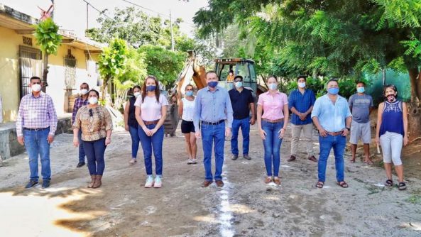 Impulsando una intensa agenda de arranques de obra durante esta semana, el presidente municipal de Bahía de Banderas, doctor Jaime Cuevas Tello, acompañado de su esposa Ana Esperanza Berumen de Cuevas, vecinos y regidores, inició la reconstrucción en concreto hidráulico de una vialidad más para dar continuidad al proyecto de obra pública más importante de los últimos años.