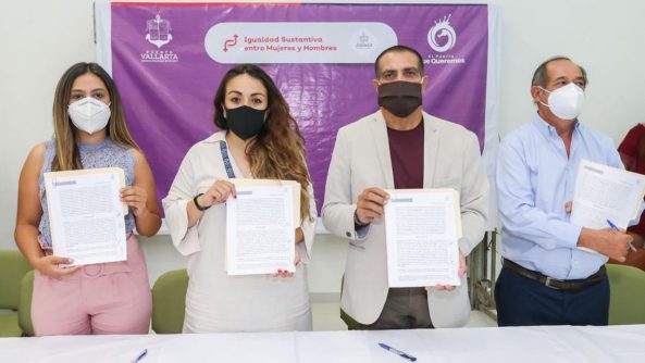 Al término de la reunión, se llevó a cabo la firma del convenio del Programa Social Apoyo Económico para las hijas e hijos de mujeres víctimas de feminicidio, entre la Secretaria de Igualdad Sustantiva entre Mujeres y Hombres y el Municipio de Puerto Vallarta.