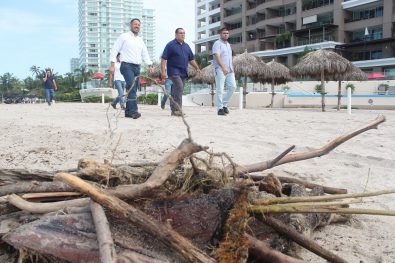 El Gobierno Municipal que preside Arturo Dávalos Peña, continúa con las labores de saneamiento tras el paso de la depresión tropical ‘Narda’, en esta ocasión con la limpieza de las playas, donde las corrientes pluviales arrojaron una cantidad importante de desechos, árboles, ramas y cacharros, por lo que se busca preservar estos espacios y mantener la actividad turística del puerto.