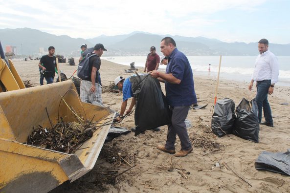 El alcalde vallartense supervisó los trabajos para el retiro de ramas, basura y electrodomésticos arrastrados por las corrientes al mar