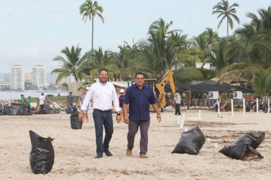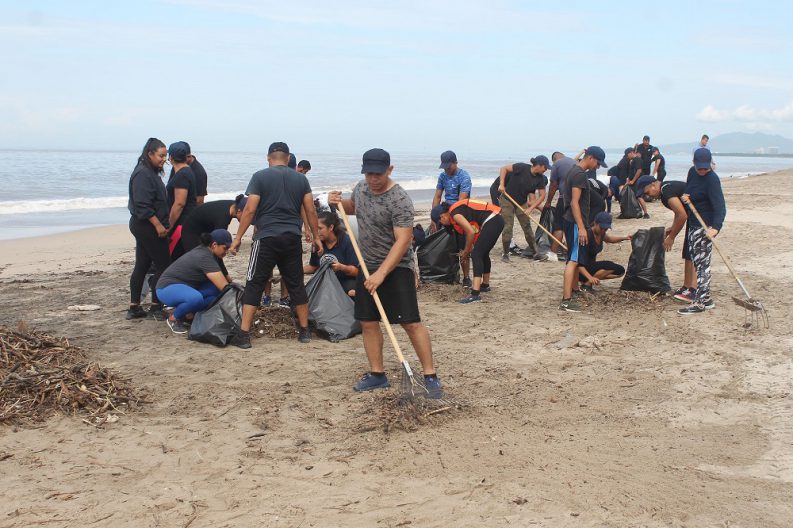 El Gobierno Municipal que preside Arturo Dávalos Peña, continúa con las labores de saneamiento tras el paso de la depresión tropical ‘Narda’, en esta ocasión con la limpieza de las playas, donde las corrientes pluviales arrojaron una cantidad importante de desechos, árboles, ramas y cacharros, por lo que se busca preservar estos espacios y mantener la actividad turística del puerto.