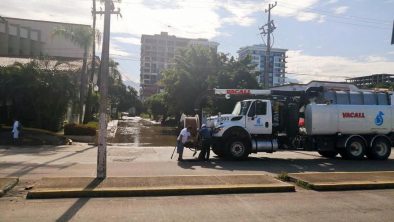 Una de las acciones prioritarias ha sido el sondeo y desazolve a la red sanitaria para disminuir los niveles que presentan las líneas en diversos puntos del municipio, especialmente en la Avenida Prisciliano Sánchez, colonia Villas Río y avenida de ingreso en su cruce con Montessori, donde se trabaja con el camión de alta dinámica y alto vacío de manera intermitente.