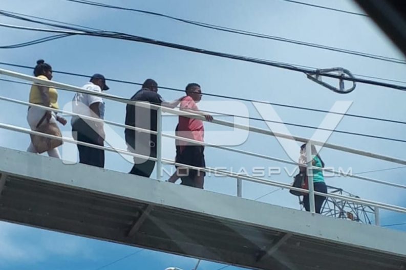 Vecino de Puerto Vallarta, intentó aventarse de lo más alto del puente peatonal de Valle Dorado, luego de haber sostenido problemas sentimentales con su mujer, siendo auxiliado por elementos de la Policía y Tránsito Municipal y Bomberos de Protección Civil de Bahía de Banderas, quienes dialogaron con el masculino hasta que lograron convencerlo de que se bajara de la estructura.