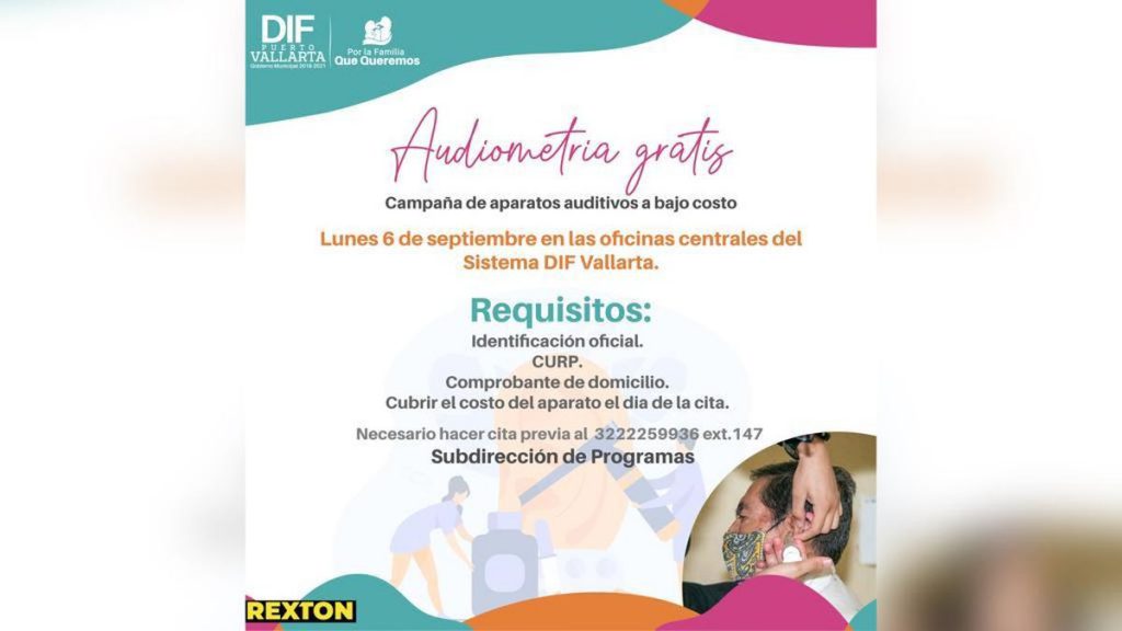 El servicio de atención auditiva se encuentra disponible para todos los habitantes del municipio y se ofrecerá el día 6 de septiembre en las oficinas centrales del Sistema DIF de Puerto Vallarta, con el objetivo de que más personas puedan contar con su aparato de audición adecuado.