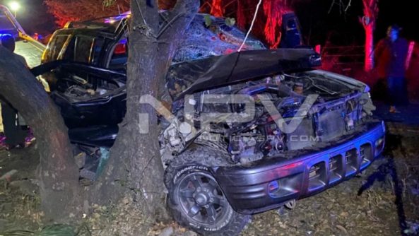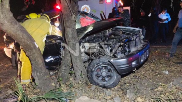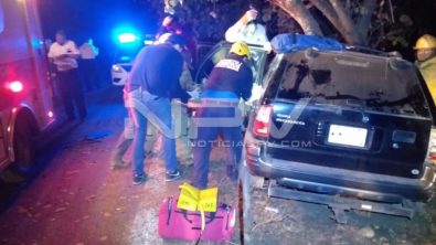 Con lesiones graves resultó una adolescente de 17 años de edad, la cual quedó prensada dentro de una camioneta que se estampó contra un árbol de Guásima, por el camino que lleva de la presa derivadora La Gaviota hacia El Coatante, en el municipio de Bahía de Banderas Nayarit